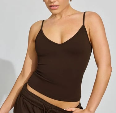 This V-neck cami screams elegance with a hint of simplicity. Its silky fabric drapes beautifully and feels smooth against the skin. Adjustable straps make it super customizable, whether you like it a bit higher or low. It transitions seamlessly from day to night—just swap out your sneakers for heels. Tuck it into high-waisted jeans or flowy skirts for a balanced silhouette. Add some layered necklaces and you’re ready to glow. ✨💫
