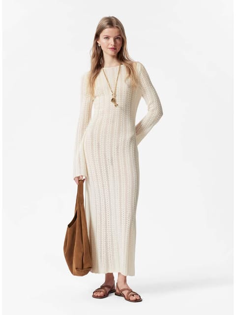 This Pointelle-Knit Midi Dress offers both comfort and style, making it a perfect choice for casual summer days. Its knitted texture is both breathable and cozy, ideal for those cooler evenings or transitional weather. The subtle details in the knit give it a unique, almost vintage feel, adding depth to the simple design. The dress has a flattering, feminine fit with a midi length that is both stylish and practical. Itโs easy to pair with sneakers for a laid-back look or dress it up with wedges for a more refined vibe. The white hue is fresh and crisp, offering the perfect backdrop for your favorite summer accessories. Whether you're strolling through a market or meeting friends for lunch, this dress will keep you feeling stylish all day long. Pair it with statement earrings or a colorful scarf for a playful touch. ๐ป๐