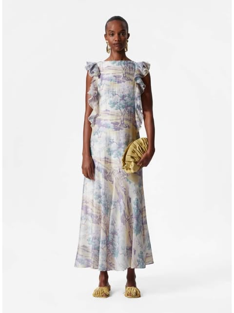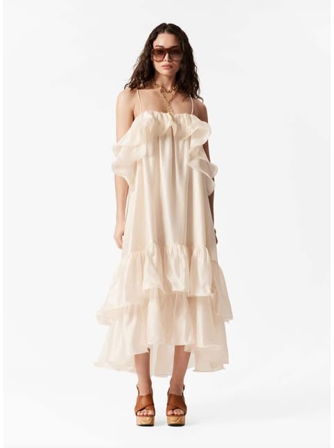 The Frilled Maxi Dress in beige is the perfect balance of elegance and ease. With delicate frill detailing along the neckline and hemline, this dress gives a soft, feminine touch to a classic design. The flowy maxi length is ideal for warm summer days and evenings, providing comfort and style in equal measure. Whether you're attending a wedding or strolling through a vineyard, this dress will keep you looking chic and feeling comfortable. The neutral beige color is versatile and easy to accessorize with any color of accessories, from gold jewelry to a bright handbag. The lightweight fabric allows for plenty of airflow, keeping you cool throughout the day. Add some wedges or strappy sandals, and youโll be ready to make an impression wherever you go.๐๐
