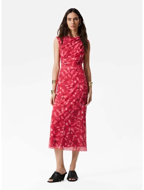 The Draped Sleeveless Midi Dress in red is the epitome of chic simplicity. The draping effect creates a beautifully flattering silhouette, accentuating your natural curves while offering comfort and movement. This dress is versatile enough for both casual and formal summer occasions, whether you're attending a garden party or going for a night out. The rich red color adds a bold touch of sophistication, and the sleeveless design keeps you cool on those hot summer days. Pair it with nude heels or sandals to elongate your legs, or add a statement necklace for an elevated look. The lightweight fabric is breathable, ensuring you stay comfortable even in the heat. The midi length adds an elegant touch, perfect for showing off your favorite shoes. ๐ฉฐ๐น๐