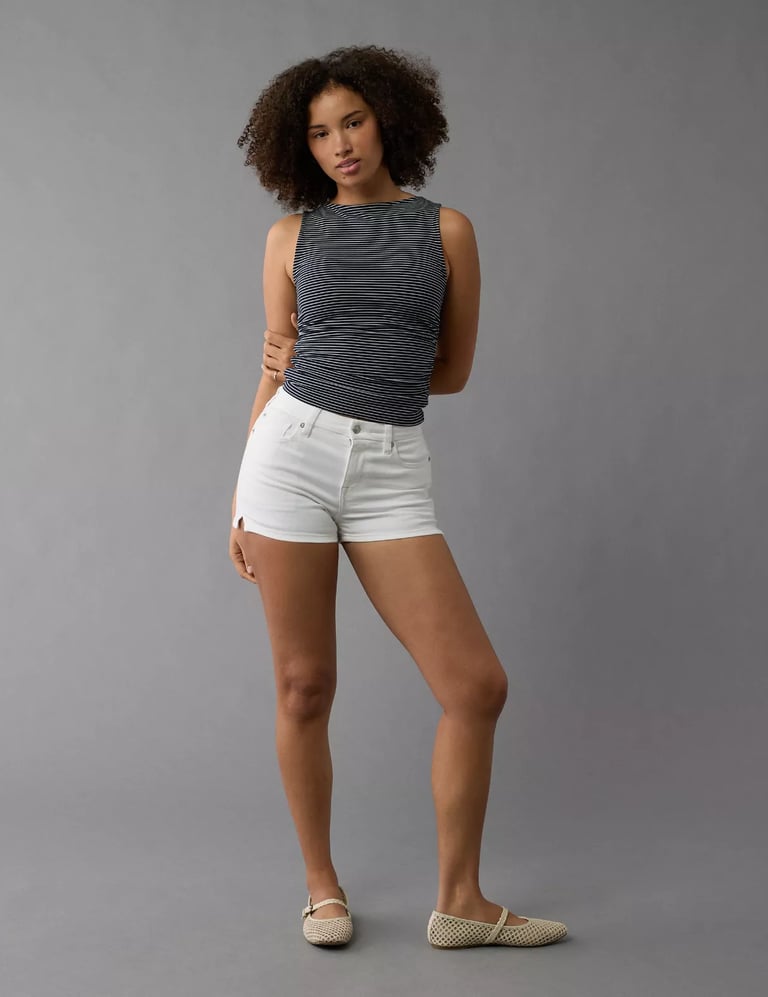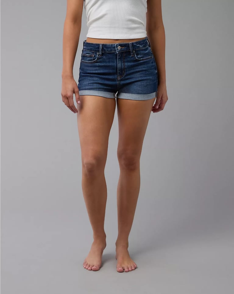 A true classic, the AE Next Level High-Waisted Denim Short Shorts in medium wash are perfect for anyone who loves that perfect "in-between" look. The color is versatile enough to pair with every single top in your closet. They feature a snug yet comfortable fit that hugs your curves without feeling restrictive. The high-rise waist flatters your tummy and gives that hourglass effect. These shorts strike the perfect balance between casual and polished, ideal for everything from road trips to rooftop BBQs. Add a boho blouse for a festival-ready look or a fitted tee for everyday wear. The raw hem detail adds just a bit of edge without overdoing it. ☀️🎶👏👖