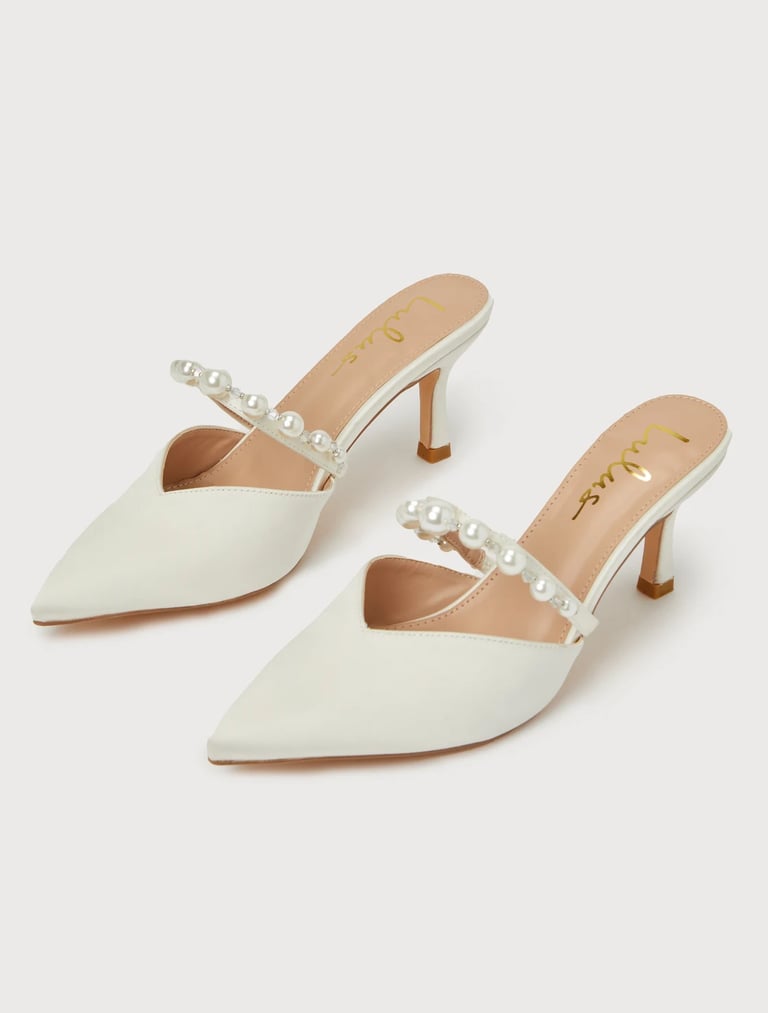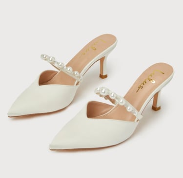 The Daryll White Satin Pearl Pointed-Toe Mule Pumps are a sophisticated take on modern luxury. With their clean white satin and pearl accents, they exude elegance and refinement. The pointed-toe design adds a sharp, chic look, while the mule style offers easy slip-on comfort without sacrificing style. Perfect for both formal and semi-formal occasions, these mules can be paired with a dress, skirt, or even tailored pants. The delicate pearl detailing on the side makes them feel extra special, adding a touch of glamour without being overwhelming. These shoes are perfect for brides, dinner parties, or any event where you want to feel polished. The neutral white hue ensures they’ll complement almost anything in your wardrobe. 🤍🌟