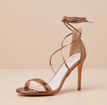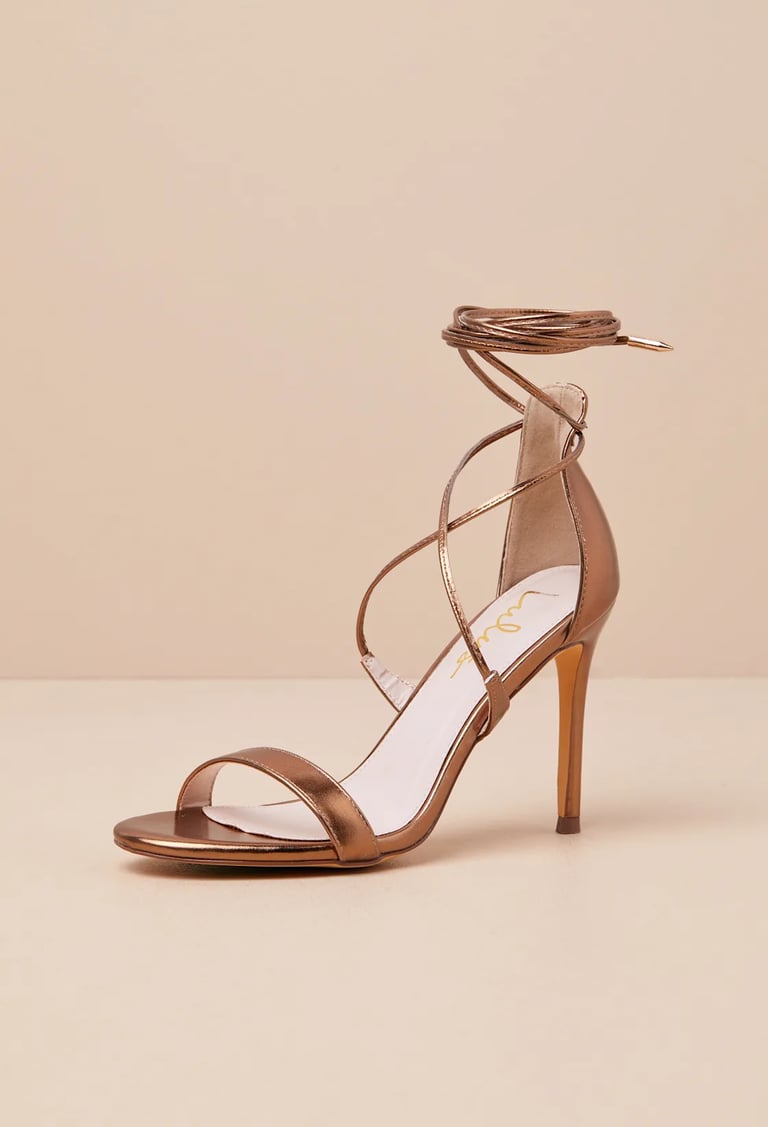 For those looking to add a touch of boldness to their footwear collection, the Aimee Bronze Metallic Lace-Up Heels are a must-have. The metallic bronze hue is eye-catching yet sophisticated, making these heels a standout accessory to any outfit. The lace-up design provides an adjustable and secure fit, ensuring comfort while still being incredibly stylish. The high heel adds height and sophistication, perfect for pairing with dresses or wide-leg pants. These heels are ideal for those looking to make a statement with their footwear, offering a unique and modern twist on traditional designs. Whether you're headed to a party or a cocktail hour, these shoes will certainly elevate your look.