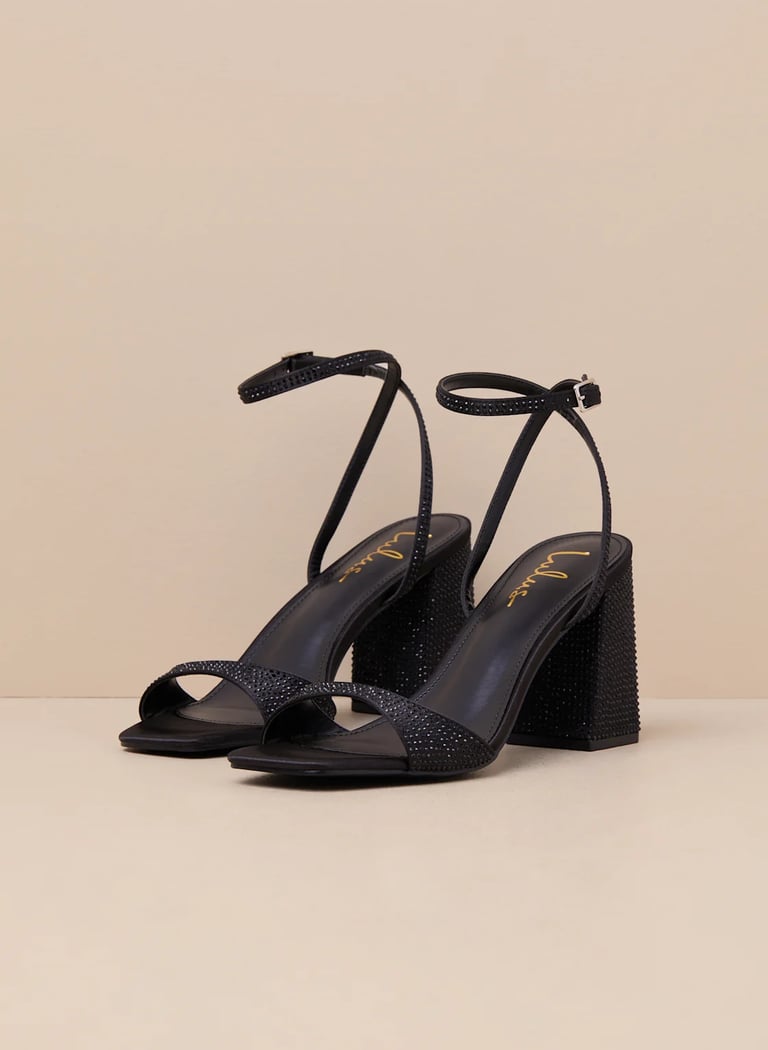 The Callerie Black Rhinestone Ankle Strap High Heel Sandals are designed to make you shine! These stunning black heels are adorned with rhinestone embellishments that catch the light beautifully, giving your outfit a glamorous, sparkling touch. The ankle strap provides a secure fit while adding an extra bit of flair to the design. The high heel gives you that perfect boost in height, making them ideal for date nights or elegant soirées. Pair these heels with a little black dress or a sleek jumpsuit for a truly dazzling look. The black color and rhinestone details make them perfect for evening events, where you want to look both chic and radiant. These sandals will turn heads and ensure you make a lasting impression. 💎✨
